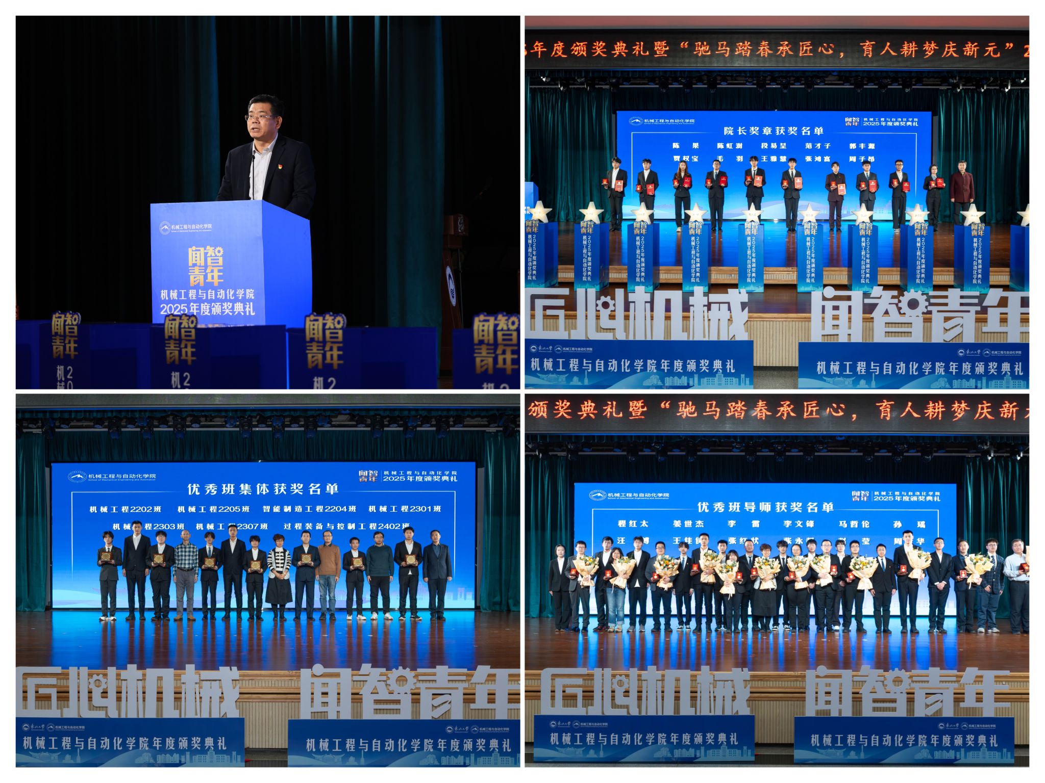 学院党委郝建山正在致辞中系统回首了一年来学院取得的主要成绩。学院积极办事国度计谋,投身深度金属矿智能开采纳配备全国沉点尝试室扶植,并正在环节科研范畴实现标记性冲破,获得国度严沉专项支撑。同时,学院成功引进增材取激光制制范畴领军团队,稳步推进学校新增学位点扶植,为久远成长奠基根本。正在人才培育方面,正在“挑和杯”“中国国际大学生立异大赛”等多项赛事中斩获国度级项,结业生就业率持续连结高位,展示了全面成长的优良素养。郝建山阐释了“闻智青年”品牌的育人内涵,勉励全体师生胸怀“国之大者”,将小我成长融入“制制强国”计谋,过硬本事,怯于立异创制,勤奋成为担任平易近族回复大任的时代新人。副院长罗忠表扬决定。颁环节分三轮顺次进行。起首颁布的是“院长章”,刘云飞为毛羽等10名正在专业进修、科技立异、随后颁布“优良班集体”项,班导师代表为7个正在班风、最初,仪式聚焦育人一线论理学生代表向获评“优良班导师”的教员们献上鲜花取荣誉证书,表达诚挚感谢感动。“院长章”获得者代表毛羽连系科研竞赛取意愿办事履历,讲述了“道阻且长,行则将至”的成长;“优良班集体”获代表豆煜轩分享了班级凝心聚力、共建优秀学风的活泼经验。正在“闻智匠心 共话青蓝”出格环节,优良班导师马哲伦取所带班级学生代表刘定佳同台交换,从分歧视角展示了师生间思惟引领、学业互帮、讲授相长的温情互动,彰显了育人一线的深挚交谊取结实成效。据悉,“闻智青年”是机械工程取从动化学院出力打制的文化育人品牌。本次颁仪式既是年度的集中展现,也是典型树立、激励朝上进步的主要平台,旨正在指导全体学生以先辈为楷模,坚想、夯实专业根本、锻制立异能力,勤奋成长为具有家国情怀、全球视野取创制活力的杰出工程人才,为学校“双一流”扶植和高质量成长注入芳华力量。