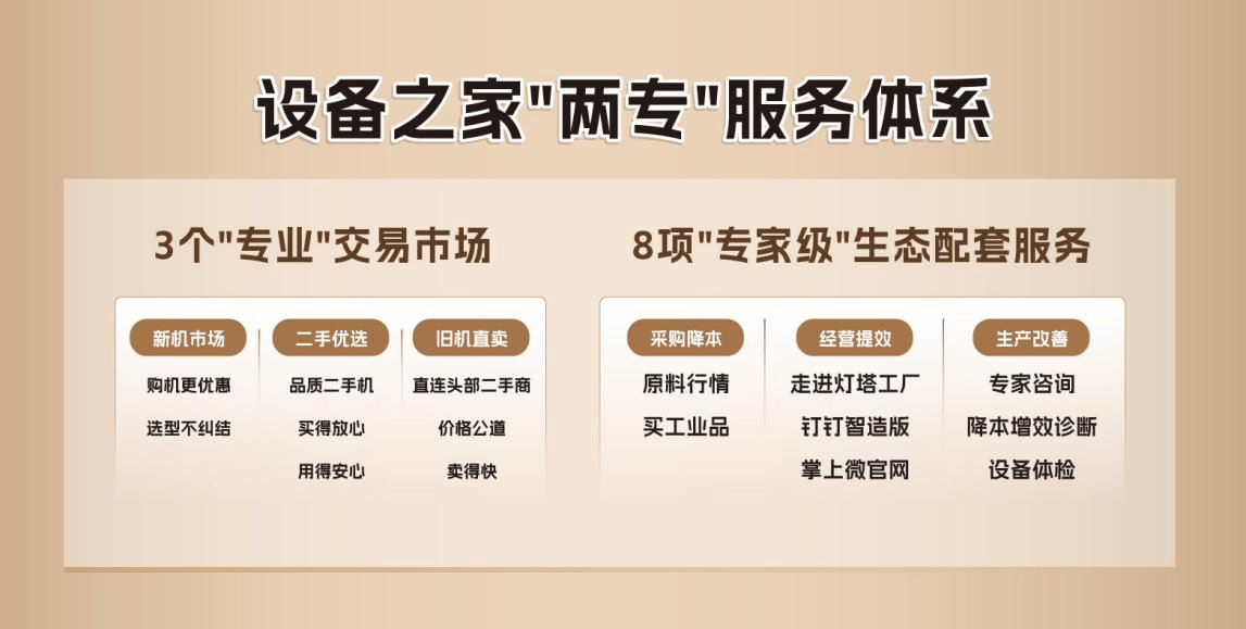 做为国内首个专注于设备全生命周期的数字化平台,“设备之家”创立的初志,不只是积极响应国度工业范畴大规模设备更新计谋,更努力于为买卖两边供给高效供需对接的专业买卖市场,为制制企业供给维保、技改、数字化等一揽子办事,特别正在帮帮厂商扩大品牌声量、拓展设备发卖方面,可以或许无效处理配备财产消息不合错误称、获客成本高、地区等痛点,以数字化手段帮力厂商开辟市场,让设备“买得省心、卖得高效、用得智能”。