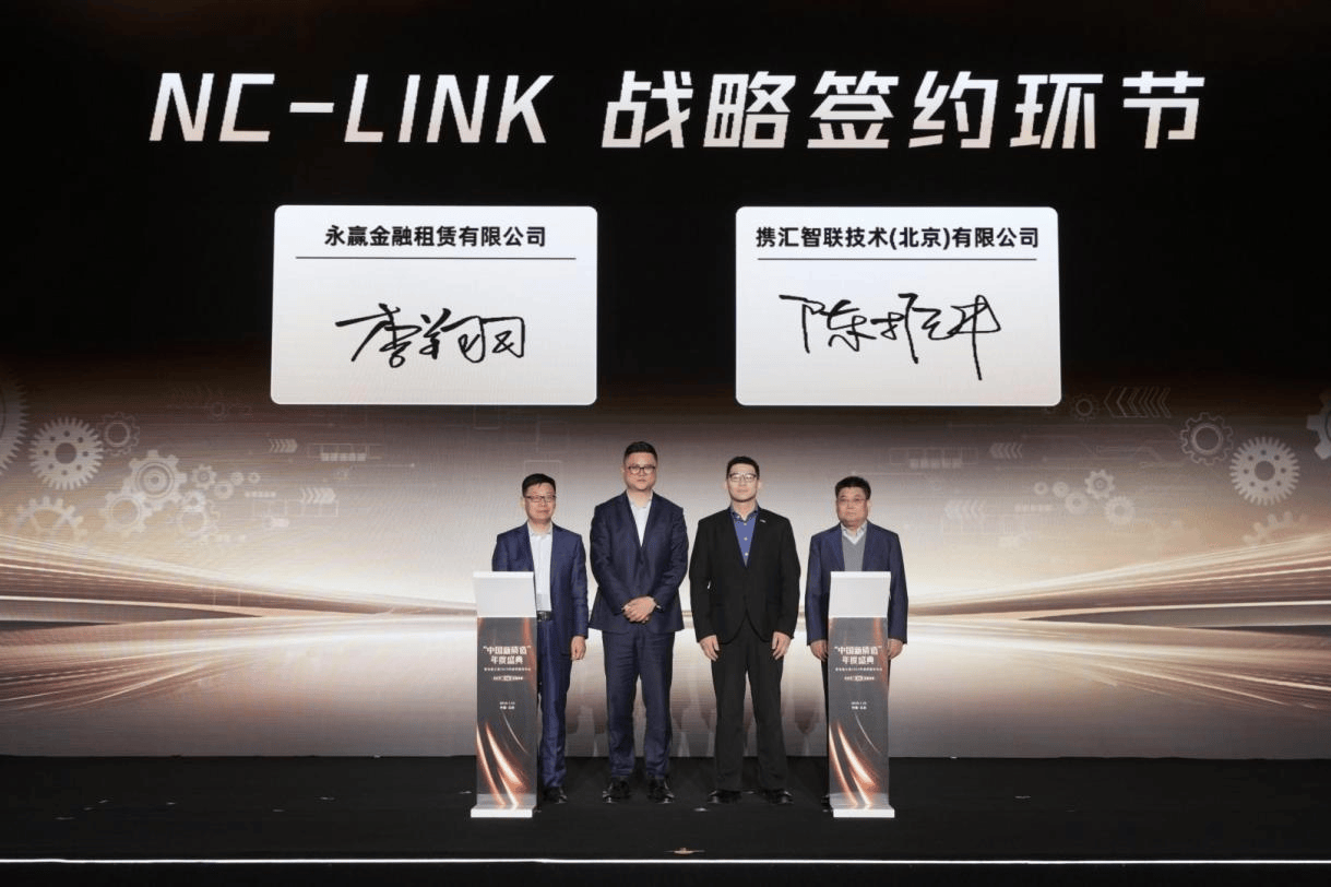 勾当现场,永赢金租取携汇智联手艺()无限公司签订NC-LINK计谋合做和谈,两边将依托中国机床东西工业协会自从制定的互联尺度,配合鞭策设备互联互通取数据价值挖掘,破解中小企业数字化转型“数据孤岛”难题,为培育新质出产力搭建数字化根本设备。