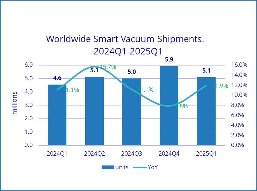 IDC:2025年第一季度全球智能吸尘器出货量同比增