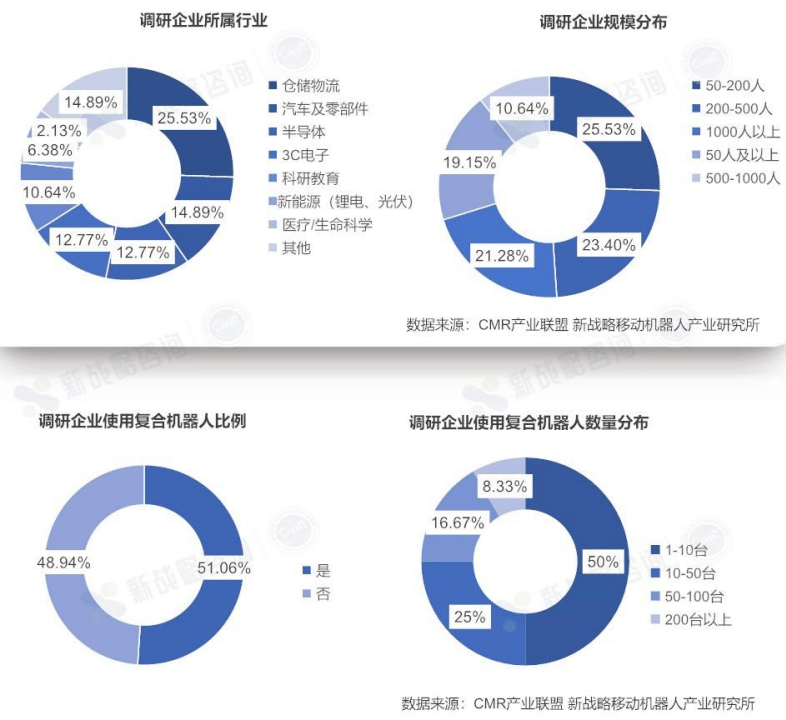 响应柔性制制的焦点需求:现代制制业面对小批量、多品种的出产挑和,要产线能快速调整。复合机械人的矫捷性和可沉构性恰是为此而生。它们可以或许替代保守固定工位,实现物料正在工位间的自支流转和精准功课,极大提拔了产线的柔性。“具身智能”成为新赛道:行业正将具身智能视为下一代机械人的演进标的目的。这意味着机械人的智能并非孤立存正在,而是通过取物理的交互不竭进修和进化,最终能像人一样正在复杂非布局化中完成多使命协同功课。总体来看,更矫捷、更切近现实工业场景的标的目的快速成长将来的合作将不只仅是硬件机能的比拼,更是对行业工艺学问的深度理解、软硬件一体化的整合能力以及建立生态的分析较劲。具身智能复合机械人的下逛使用行业正正在越来越丰硕,为了更好地领会当前各行业对该类机械人的使用现状及等候,新计谋挪动机械人财产研究所出格针对下逛终端用户做了一次问卷查询拜访,本次共收集47份无效问卷。以下为问卷查询拜访成果: