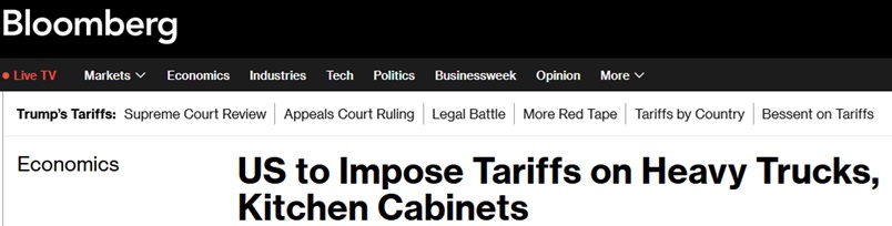 500)this.width=500 align=center hspace=10 vspace=10 rel=nofollow/>500)this。width=500 align=center hspace=10 vspace=10 rel=nofollow/特朗普周四正在Truth Social上发帖颁布发表,他打算从10月1日起对沉型卡车征收25%的关税。特朗普写道:“为了我们伟大的沉型卡车制制商免受不公允的外部合作,我将从2025年10月1日起对世界其他地域出产的所有‘沉型(大型!)卡车’征收25%的关税。”随后,特朗普还正在社交上颁布发表,对厨柜和浴室打扮台柜征收50%的关税,对软垫家具征收30%的关税,这两项关税也将于10月1日生效。白宫和担任对这些商品进行商业查询拜访的美国商务部均未发布这些提案的细节及其实施体例。这些声明是正在特朗普设定的方针实施日期前一周发布的。按照《商业扩展法》第232条进行的查询拜访答应总统对被认为对至关主要的商品征收关税,包罗为对多个行业征收关税奠基根本。据一份颁布发表查询拜访的通知称,特朗普本年4月启动商务部对中型和沉型卡车及其零部件进口纳税需要性的查询拜访,声称“少数”外国供应商通过补助和“性商业行为”从导了美国进口。这项查询拜访涵盖分量跨越10,000磅的卡车及其零部件和衍出产品——这些车辆旨正在正在运输货色,而不是像消费者喜好的轻型皮卡那样。支撑这些关税的人士暗示,这将有帮于美国国内制制业和国度的工业根本。